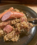 Zuurkool met vlees, veel vlees gedurende 10u op een zacht vuurtje laten sudderen, dan krijg je waar onze klanten elk jaar rond deze tijd weer naar snakken!